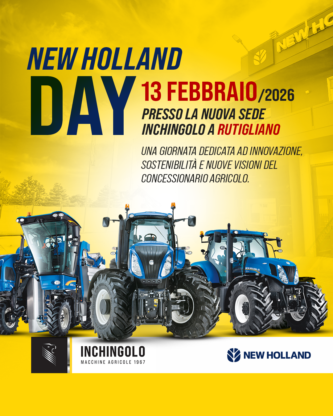 New Holland Day | Il futuro dell’agricoltura parte da Rutigliano Venerdì 13 febbraio, Inchingolo apre le porte della nuova sede di Rutigliano per il New Holland Day: una giornata di confronto dedicata a innovazione, sostenibilità e nuove visioni del concessionario, con il contributo di istituzioni, università, associazioni agricole e top management New Holland. Un appuntamento